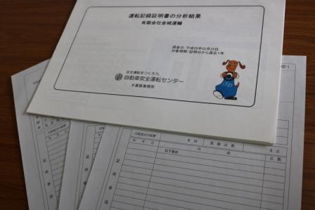 金城運輸では毎年1回以上全ドライバーを対象に「運転記録証明書」を取り寄せ、事故・違反の略歴を統計的に診断することにより、交通事故・違反がどのような状況・頻度で発生しているのかなどを明らかにし、その原因の分析結果を踏まえた対策を安全運転指導に役立てています。